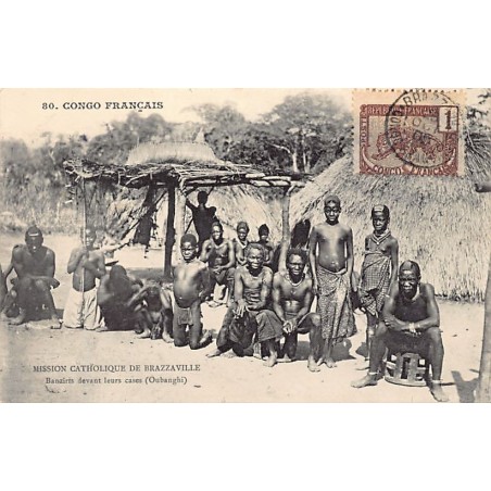 CENTRAFRIQUE - Banziris devant leurs cases (Oubanghi) - Publ. Mission Catholique 80