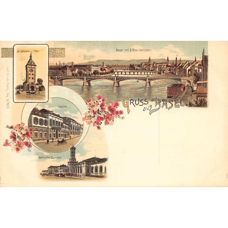 Schweiz - BASEL - Litho - St. Johanns-Thor - Basel mit 3 Rheinbrücken - Casino - Badischer Bahnhof - Verlag Künzli 1823