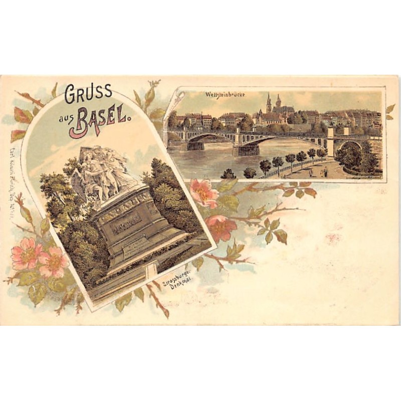 Schweiz - BASEL - Litho - Strassburger-Denkmal - Wettsteinbrücke - Verlag Künzli 734