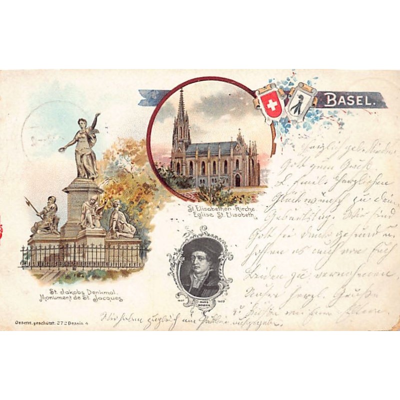 Schweiz - BASEL - Litho - St. Jakobs Denkmal - Dst. Elisabethen Kirche - Verlag unbekannt