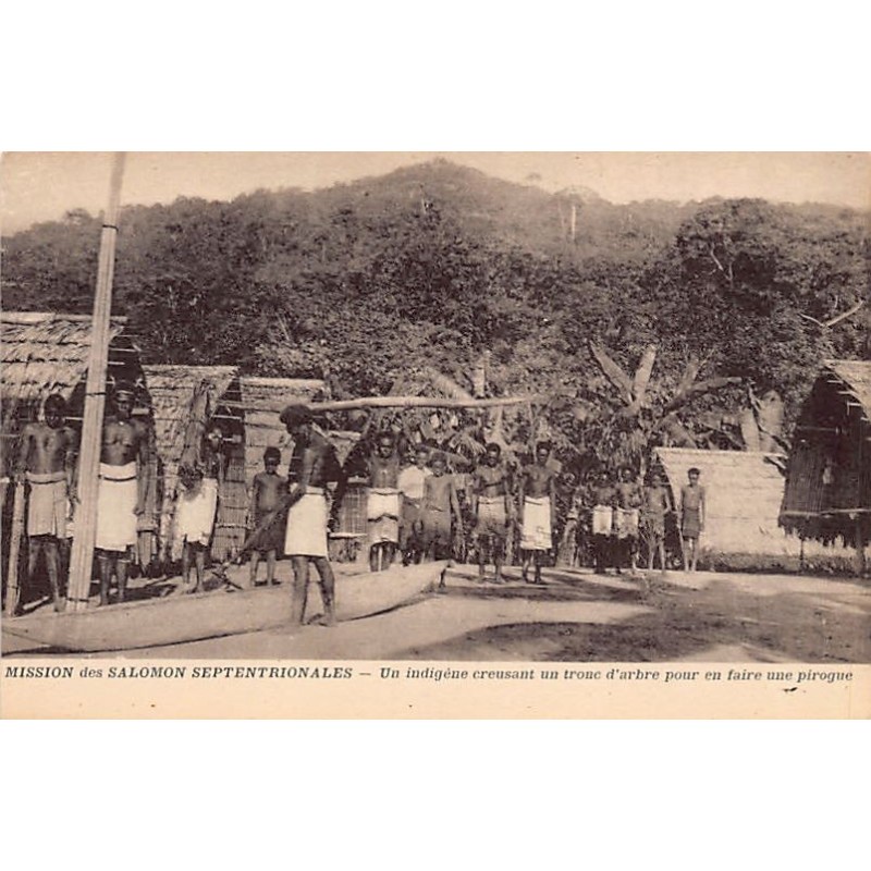 Papua New Guinea - A native digging a tree trunk to make a canoe - Publ. Mission des Salomon Septentrionales